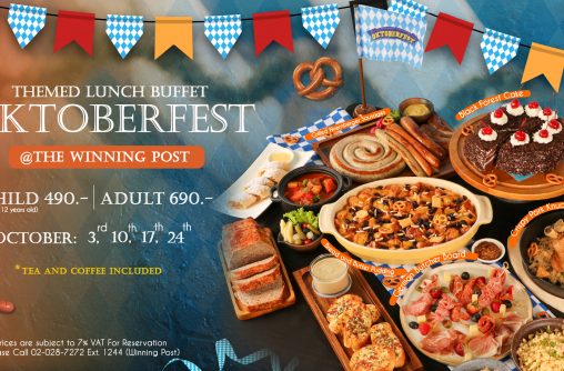 WINNING POST | International Buffet Fridays Oktoberfest BuffetEvery Friday at Winning Post from 11 a.m. – 2 p.m.October : 3rd, 10th, 17th, 24th Highlight : Grilled Nuernberger Sausages – ไส้กรอกนูเรมเบิร์กย่างBread and Butter Pudding – ขนมปังพุดดิ้งเนยGerman Butcher Board – เซตเนื้อเยอรมันรวมCrispy Pork…