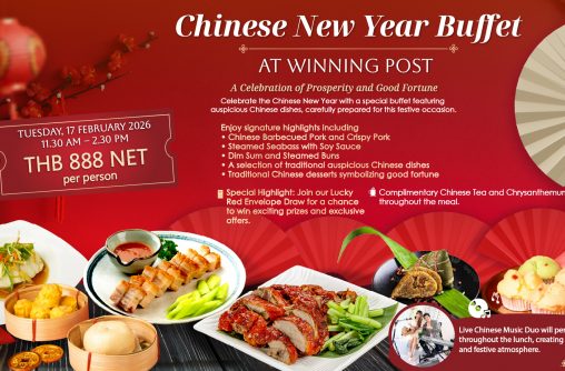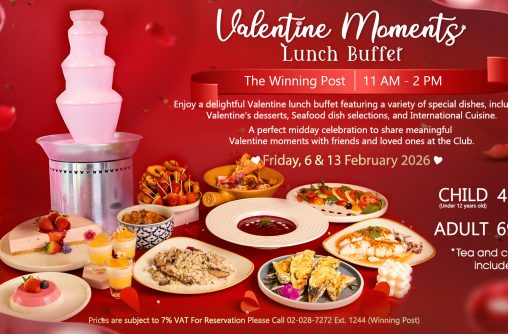 Enjoy a delightful Valentine lunch buffet featuring a variety of special dishes, including Valentine’s desserts, Seafood dish selection, and International Cuisine. Friday, 6th & 13th February 202611:00 a.m.–2:00 p.m. at Winning Post