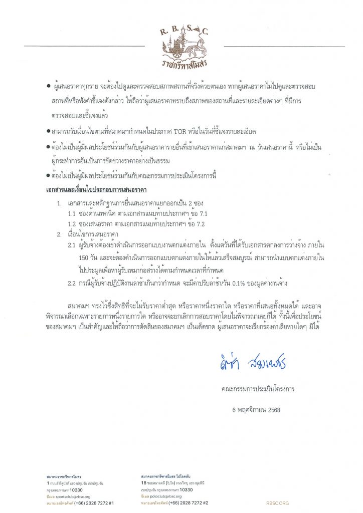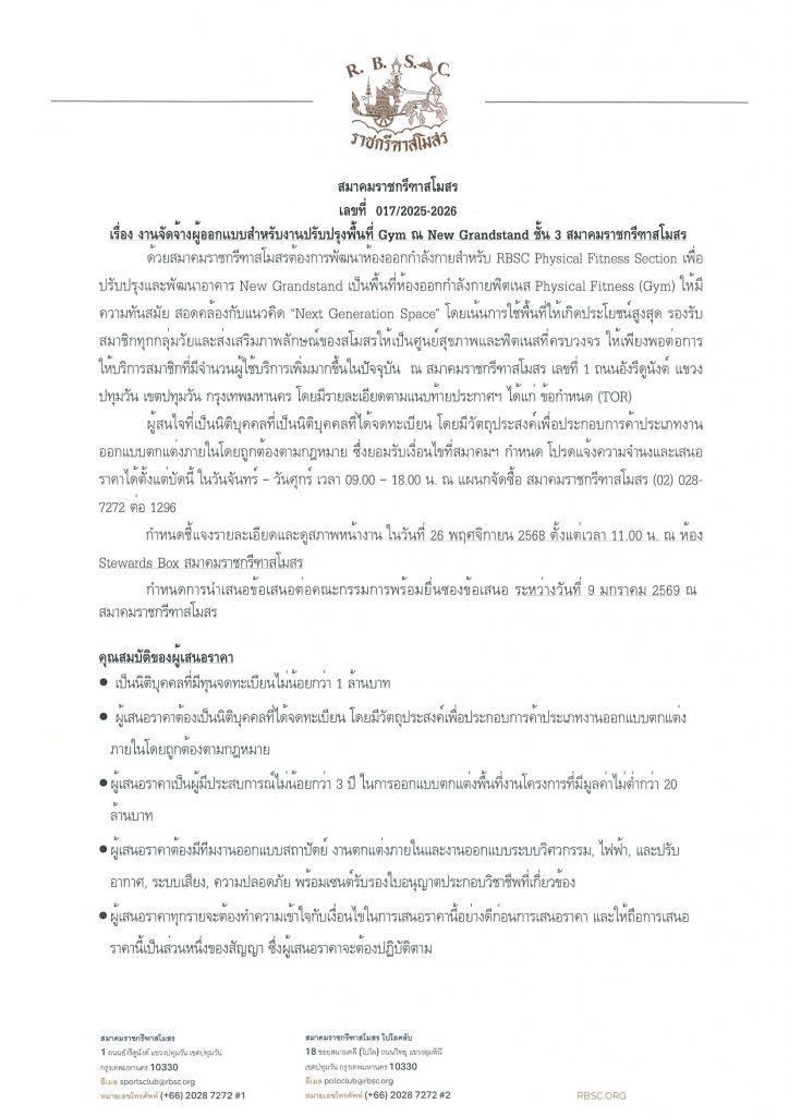 Bidding Announcement : Engaging Designer for Gym at the new Grandstand Project