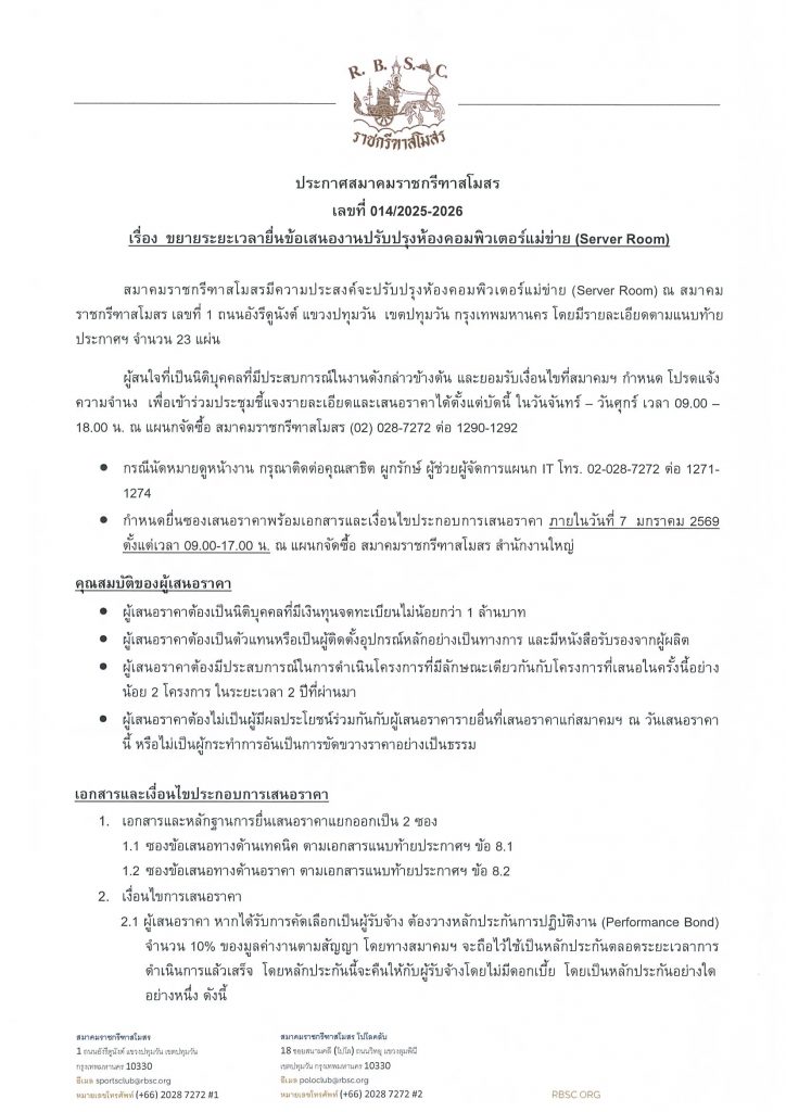 Bidding Announcement : Server Room Renovation at M Floor, RSC Building Project