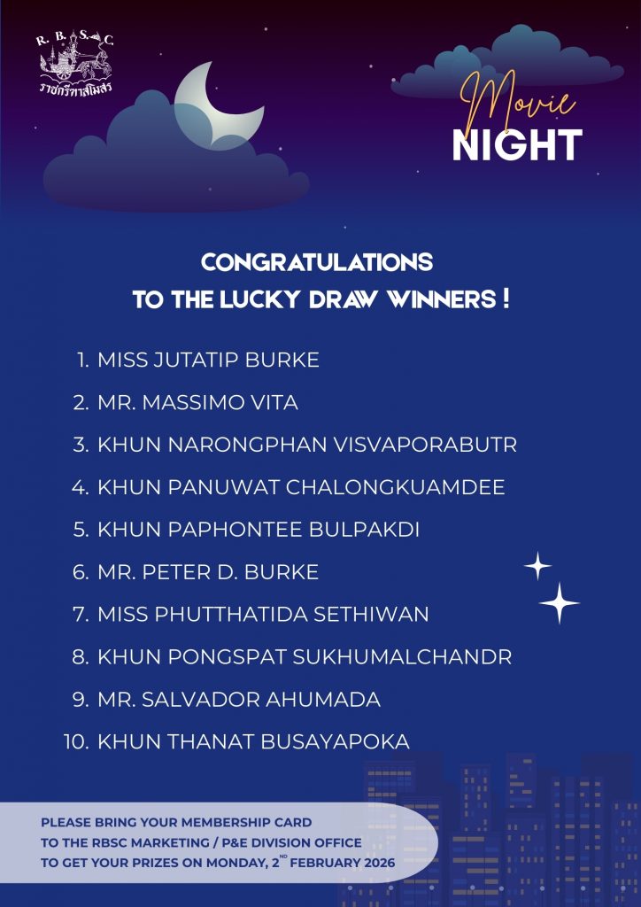 Please bring your membership card to the RBSC Marketing / P&E Division Office to get your prize on Monday, 2nd February 2026 from 9 a.m. onwards.
