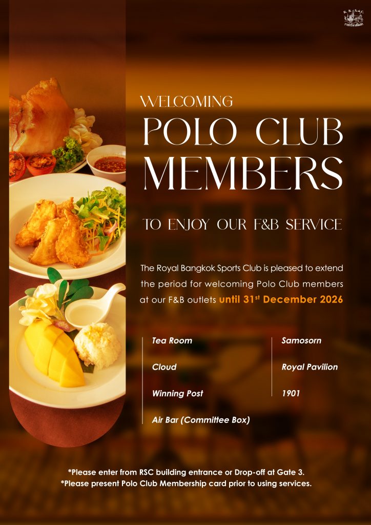 Polo Club Members are welcome to enjoy the F&B facilities at the RBSC (Until 31st December 2026) at the following outlets: