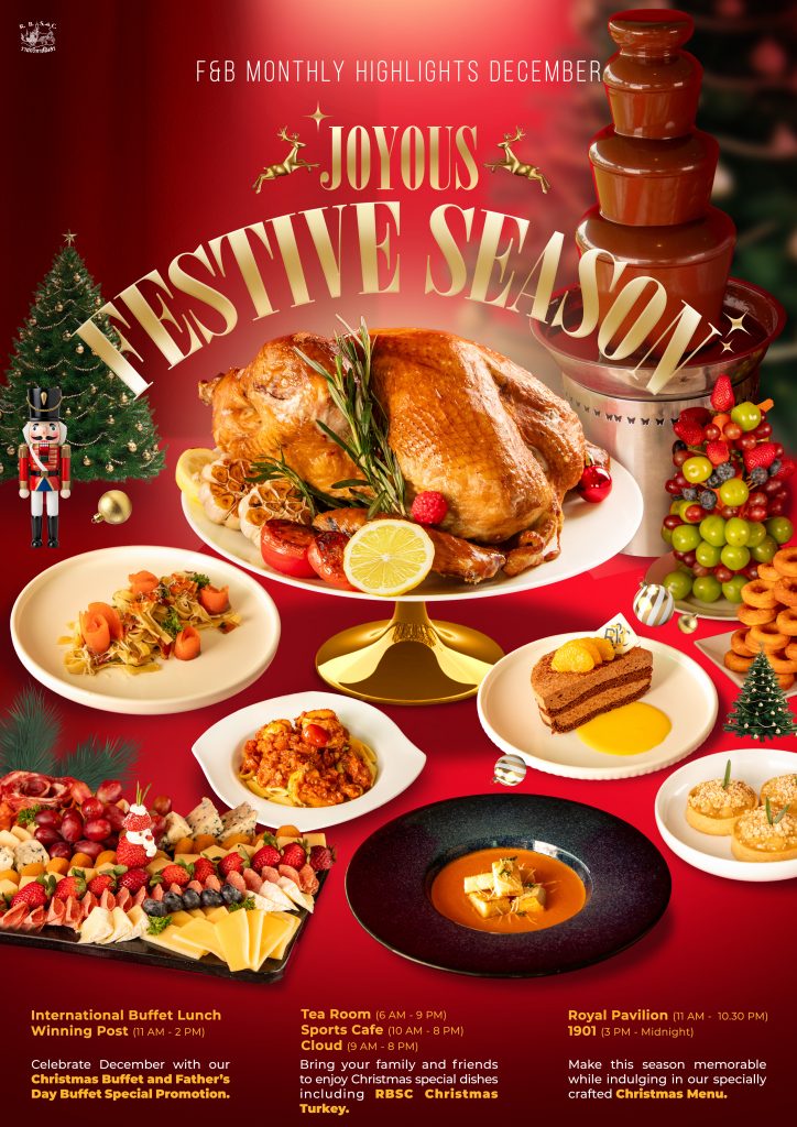 Festive Season TEA ROOM | SPORTS CAFE | CLOUD Bring your family and friends to enjoy Christmas special dishes including RBSC Christmas Turkey.