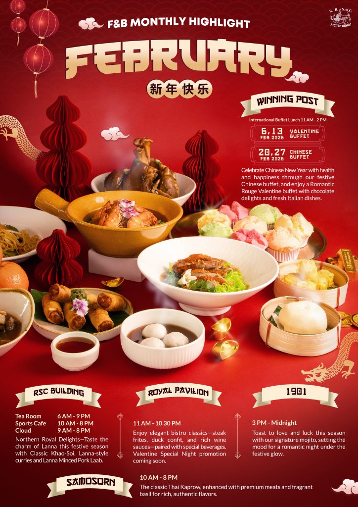Celebrate Chinese New Year with health and happiness through our festive Chinese buffet, and enjoy a Romantic Rouge Valentine buffet with chocolate delights and fresh Italian dishes.