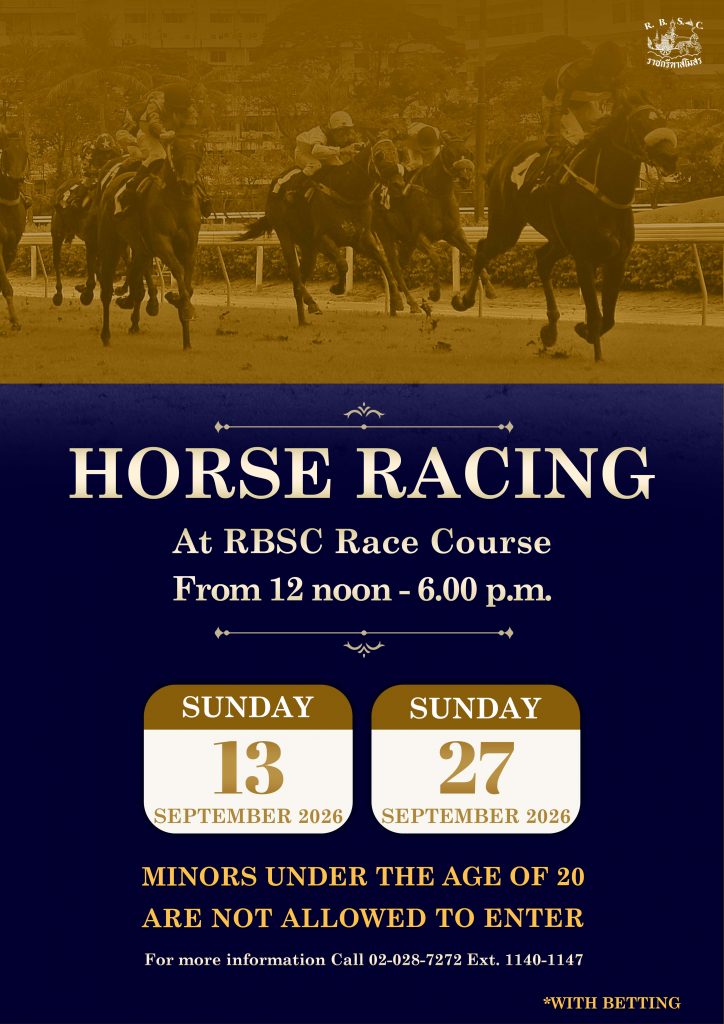 การแข่งม้าในเดือนกันยายนจะจัดขึ้นในวันอาทิตย์ที่ 13 และวันอาทิตย์ที่ 27 กันยายน 2569 สอบถามข้อมูลเพิ่มเติมที่ 02 028 7272 ต่อ 1140-1147