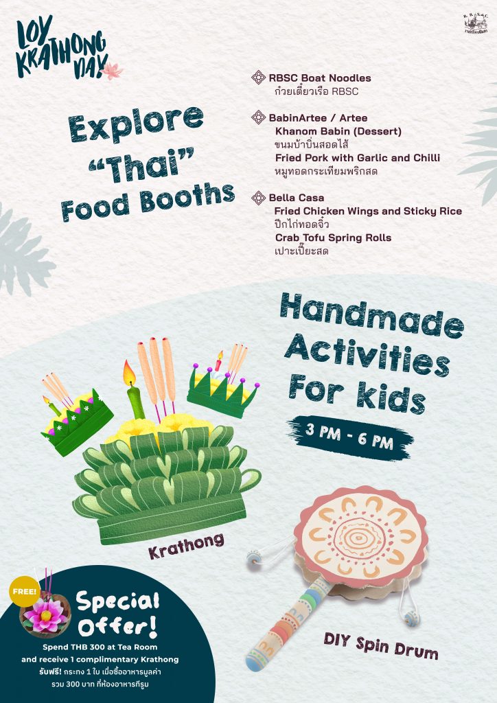 Special Offer: Spend THB300 at any food booth or Tea Room and receive 1 complimentary Krathong!
