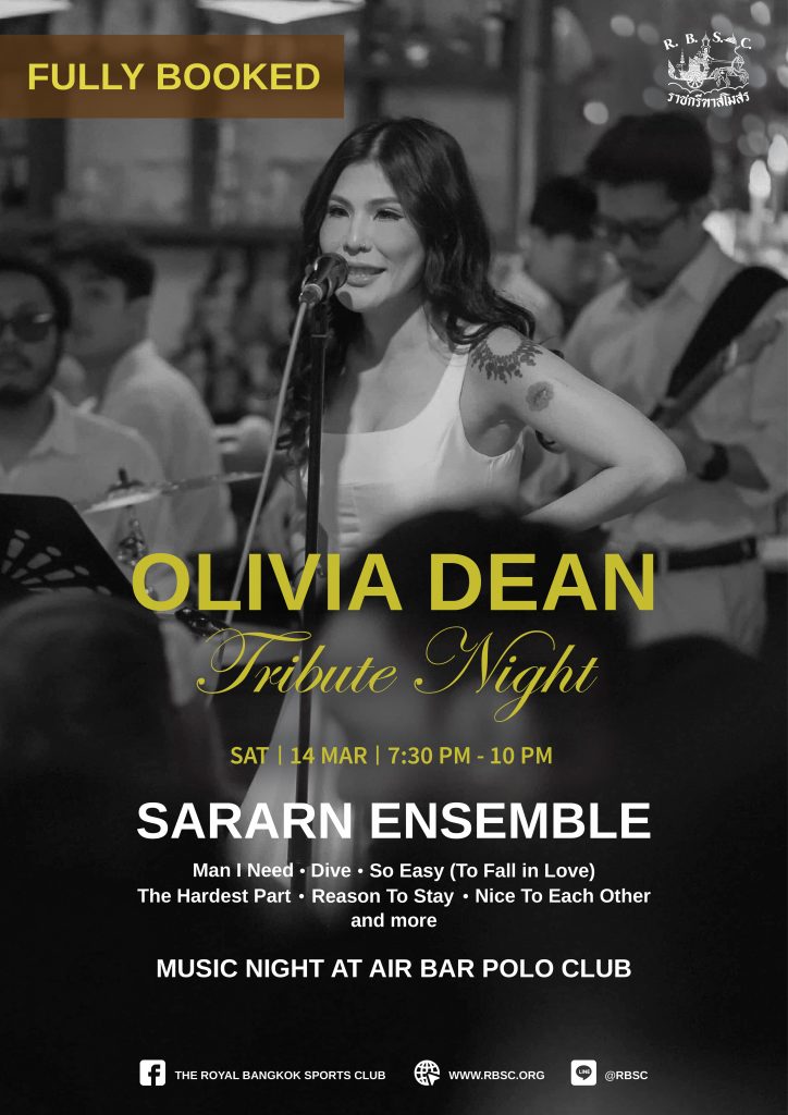 เตรียมตัวพบกับค่ำคืนที่คนรักดนตรี Neo-Soul ห้ามพลาด! ขอเชิญทุกท่านมาร่วมดื่มด่ำในงาน “Olivia Dean Tribute Night” การเดินทางผ่านท่วงทำนองที่แสนนุ่มนวลและเนื้อเพลงที่กินใจ ถ่ายทอดสดโดยวง Sararn Ensemble ท่ามกลางบรรยากาศสุดชิลล์และเรียบหรูใจกลางเมือง ให้คุณได้ปล่อยใจไปกับบทเพลงฮิตที่คุณหลงรัก: