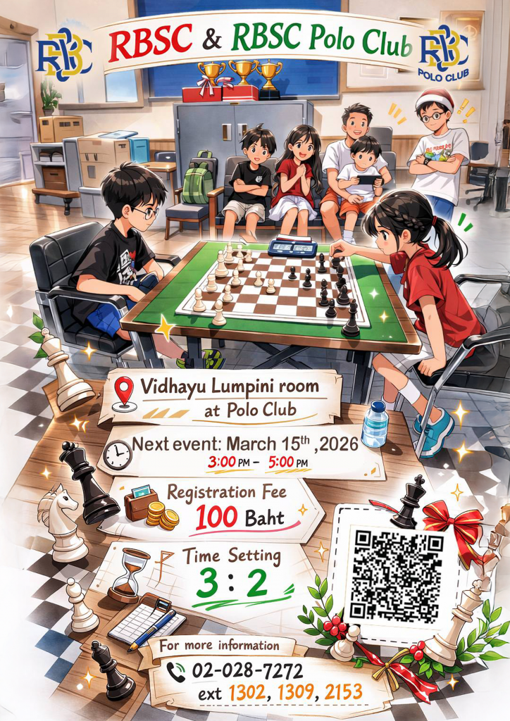 พร้อมหรือยังกับความท้าทายที่ต้องใช้ไหวพริบและความรวดเร็ว RBSC และ RBSC Polo Club ขอเชิญชวนทุกท่านเข้าร่วมการแข่งขัน Blitz Chess Tournament