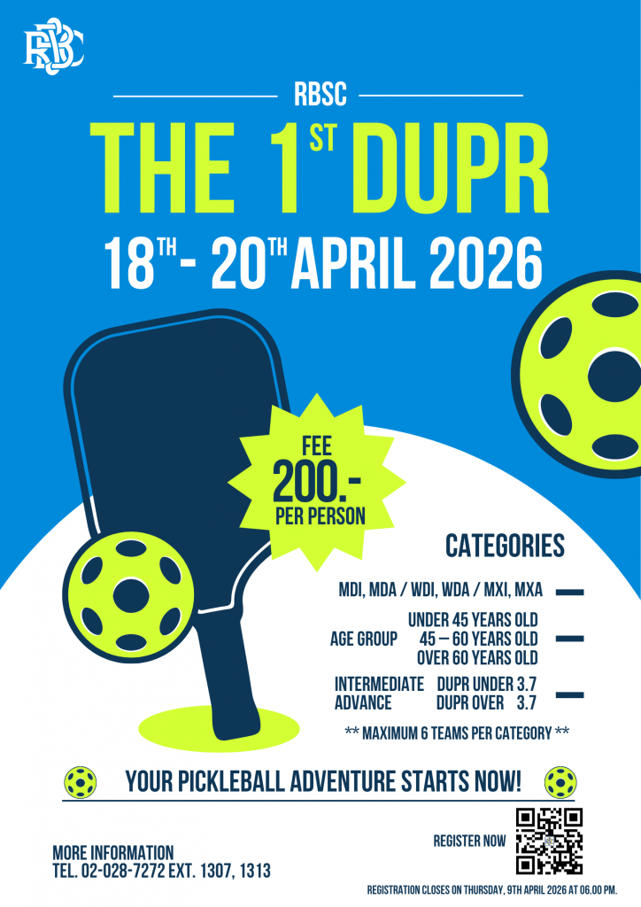 The pickleball section cordially invite all members to join the inaugural “THE 1st DUPR” in April.