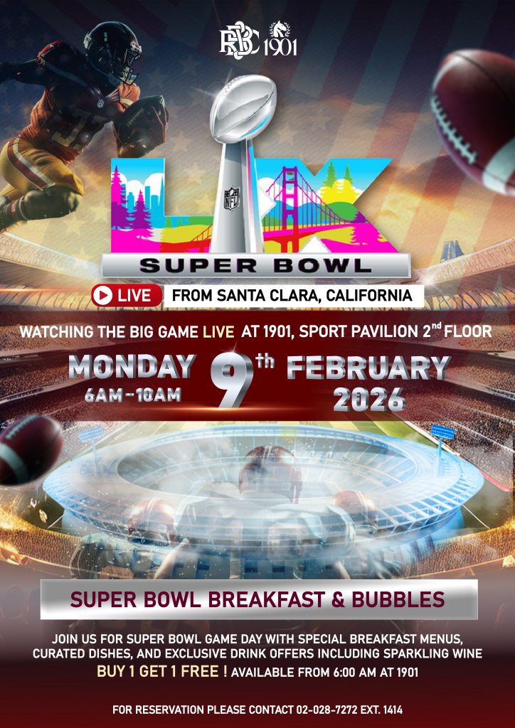 ห้อง 1901 เปิดห้องในวันจันทร์ที่ 9 กุมภาพันธ์ 2569 ตั้งแต่เวลา 6:00 น. ต้อนรับการแข่งขันอเมริกันฟุตบอลในศึก Super Bowl ไฮไลต์ประจำปีที่พลาดไม่ได้ ถ่ายทอดสดตรงจากซานตาคลารา แคลิฟอร์เนีย