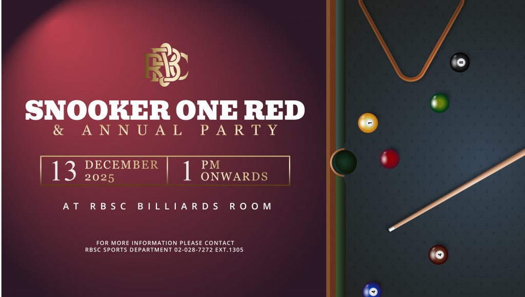The Billiards and Snooker section cordially invites all members to the Snooker One Red Tournament and Annual Party, which will take place on Saturday, December 13th, 2025, beginning at 3 p.m. onwards in the Billiards room. Walk-ins are…