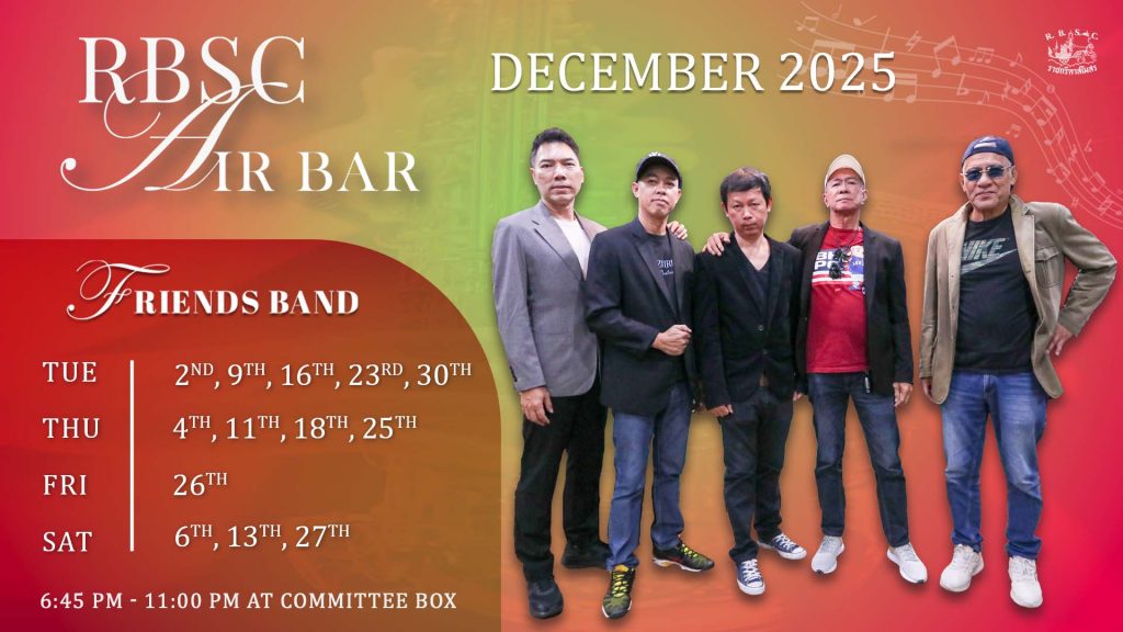 Enjoy Live Music @ RBSC Air Bar (Committee Box) by FRIENDS BANDFrom 6:45 p.m. – 11 p.m.