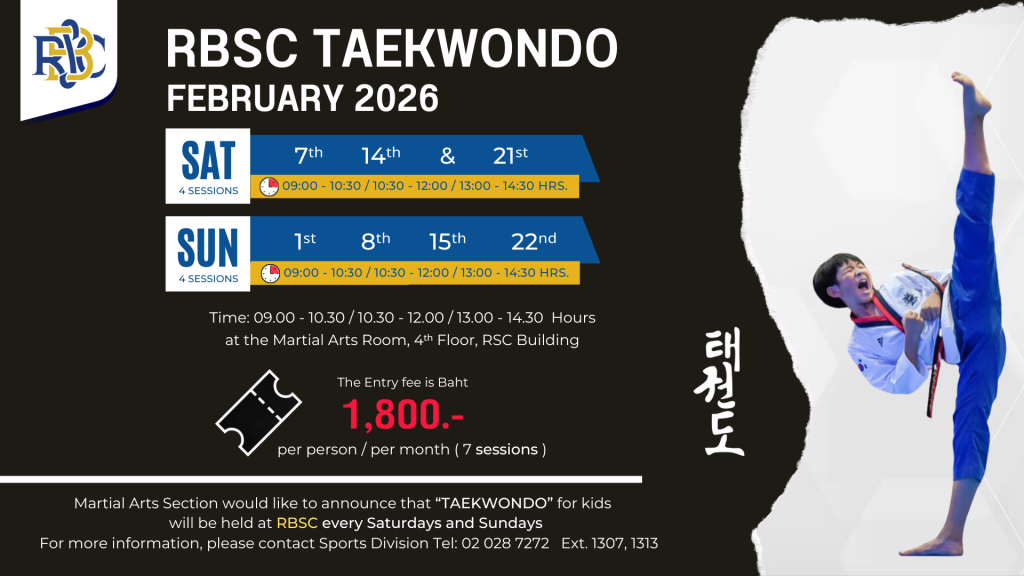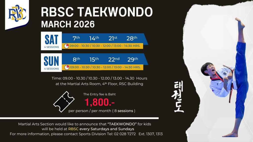 “Tae Kwon Do” classes for kids will be held at RBSC every Saturday and Sunday.