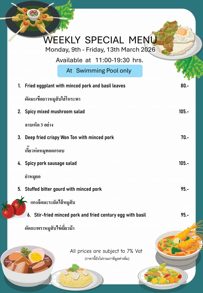 Daily Luncheon Menu at Swimming Pool