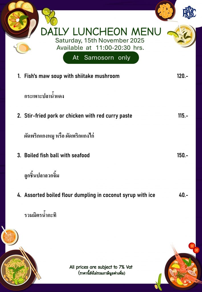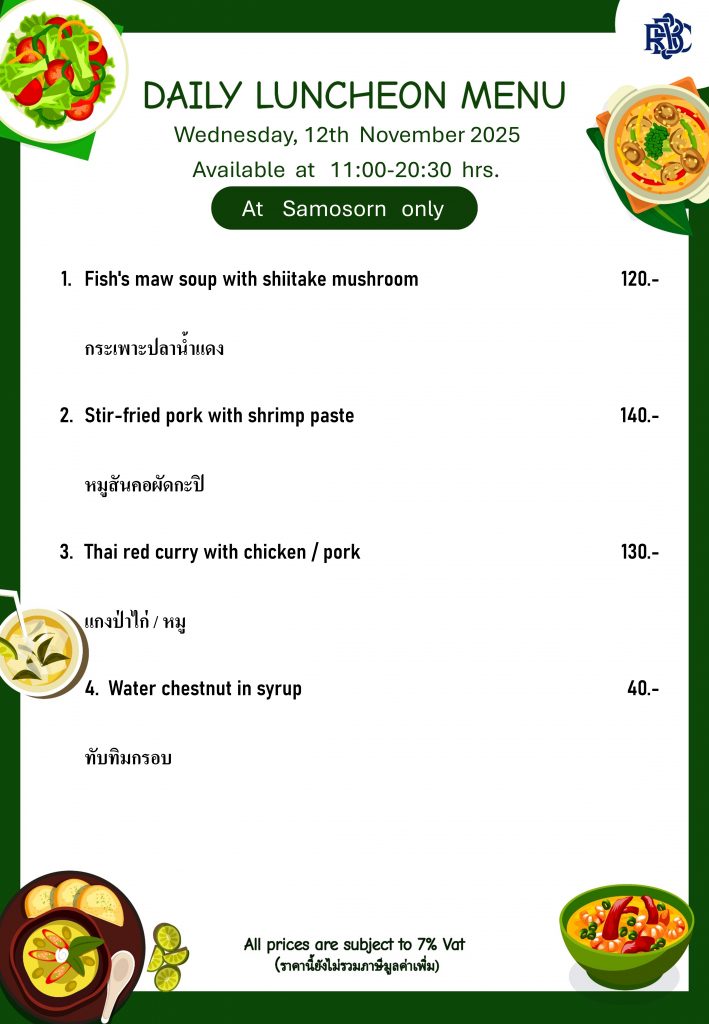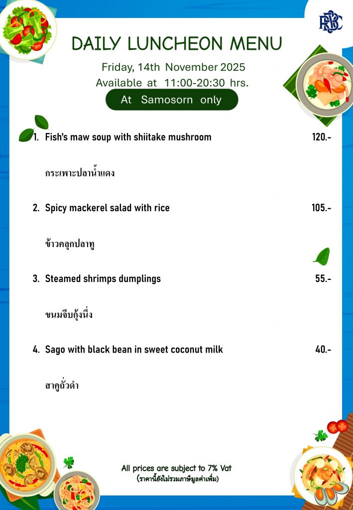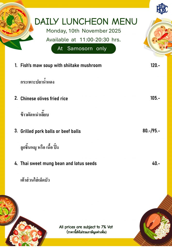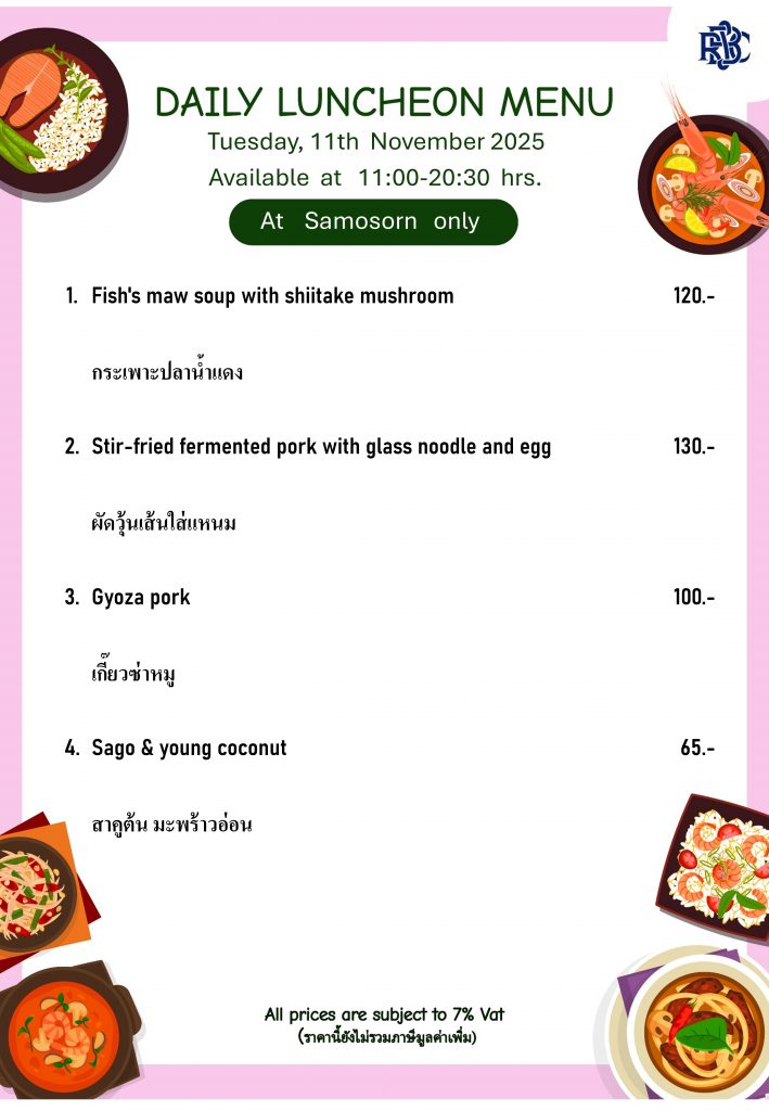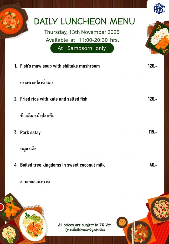 Weekly Special Menu at Samosorn