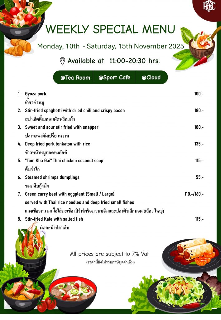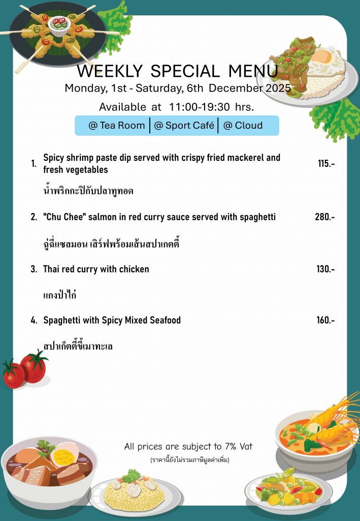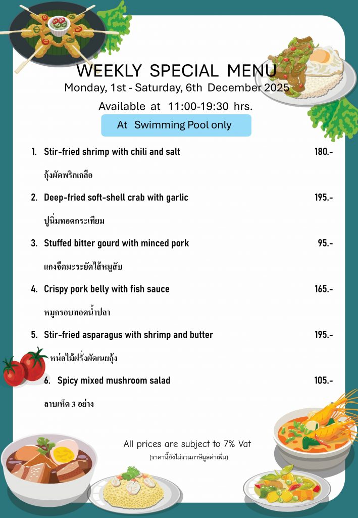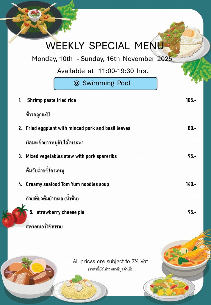 Weekly Special Menu at Swimming Pool