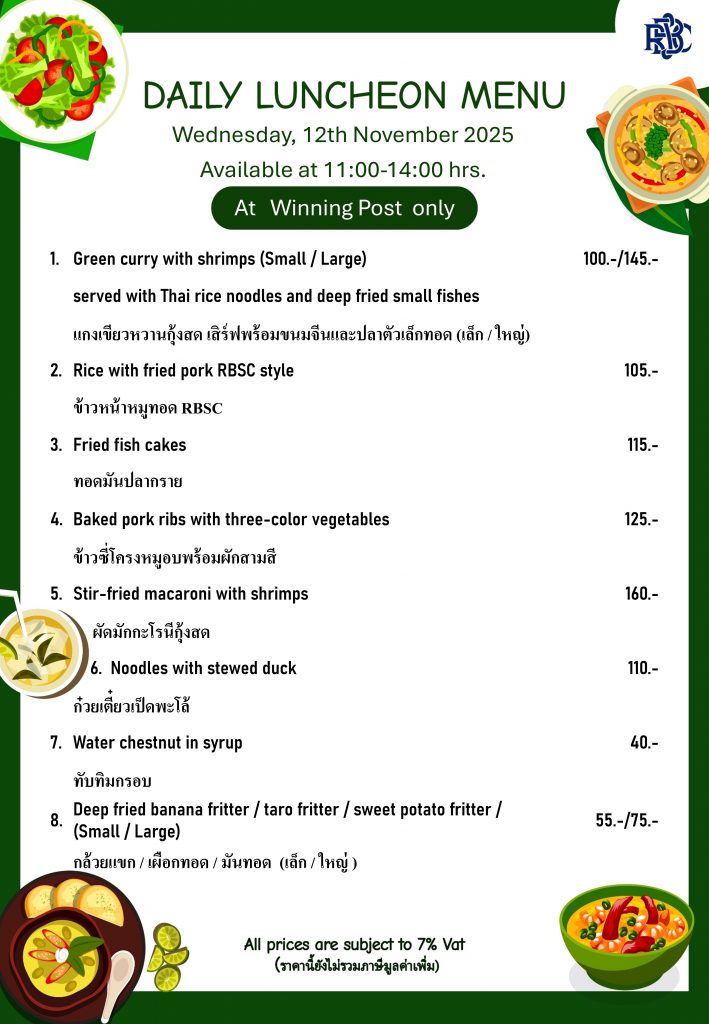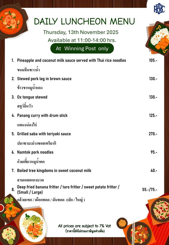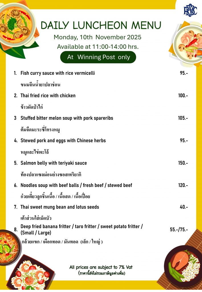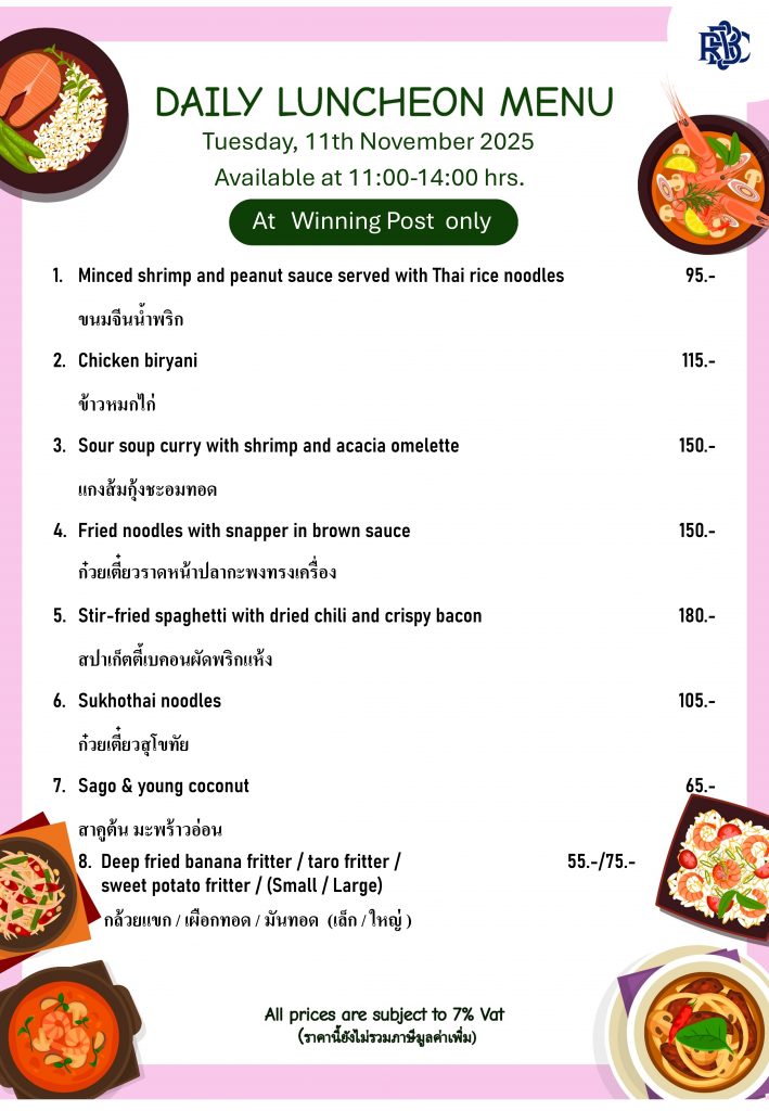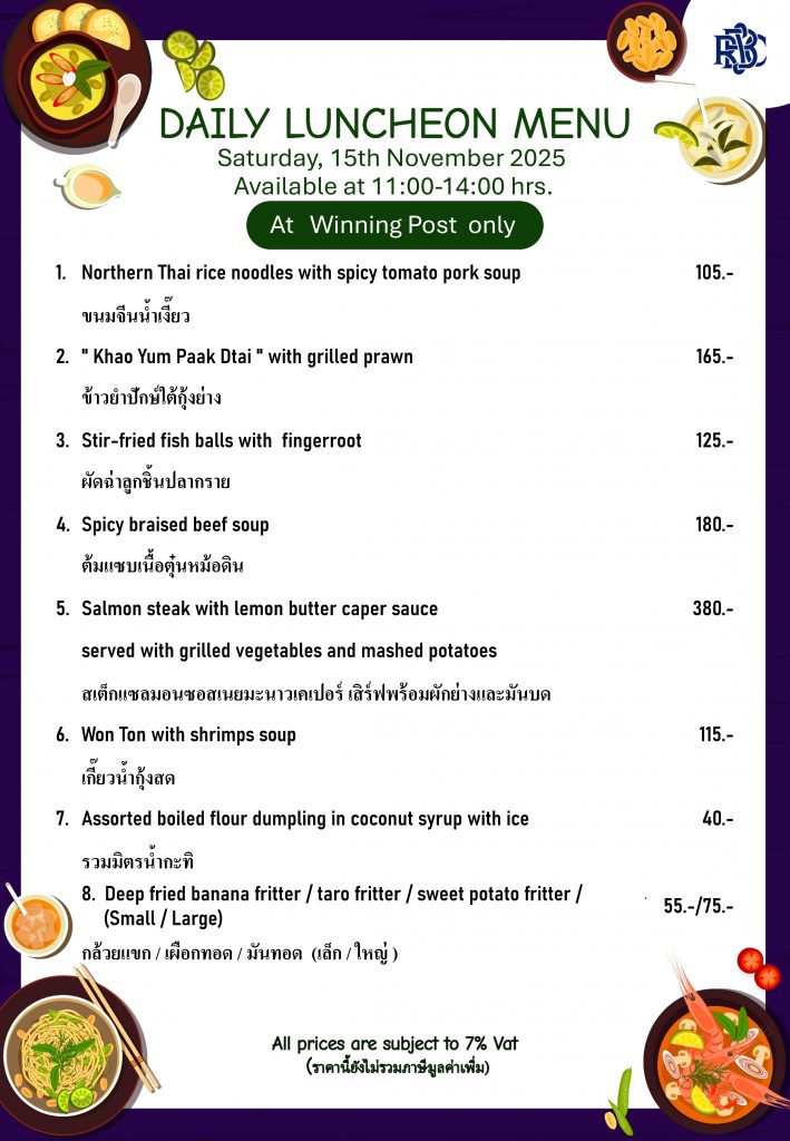 Weekly Special Menu at Swimming Pool