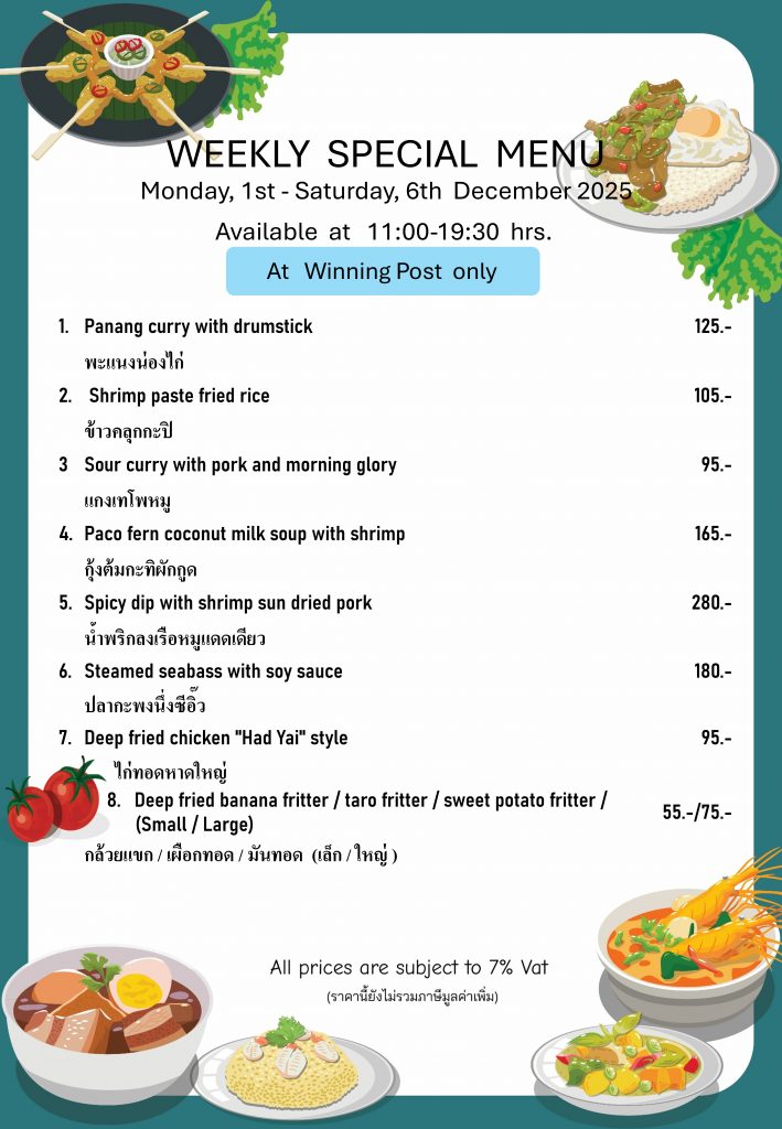 Daily Special Menu at Winning Post