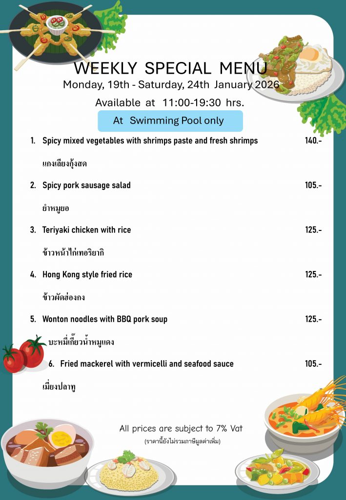 Daily Luncheon Menu at Swimming Pool