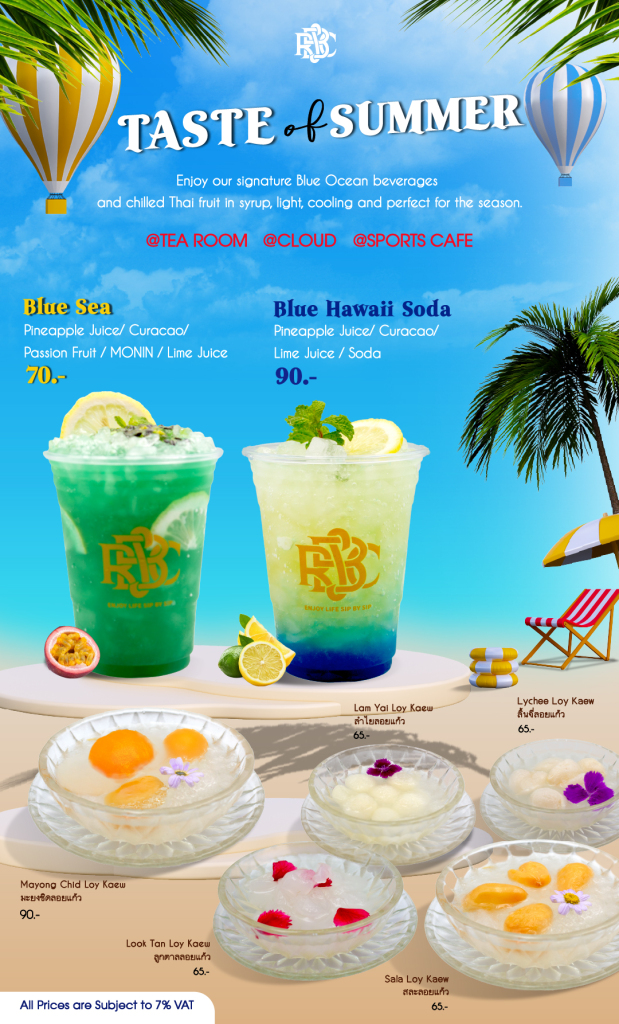 Enjoy our signature Blue Ocean beverages and chilled Thai fruit in syrup, light, cooling and perfect for the season.