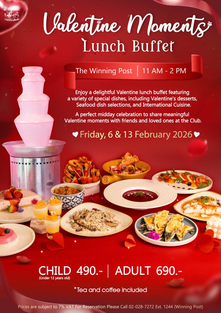 Enjoy a delightful Valentine lunch buffet featuring a variety of special dishes, including Valentine’s desserts, Seafood dish selection, and International Cuisine.