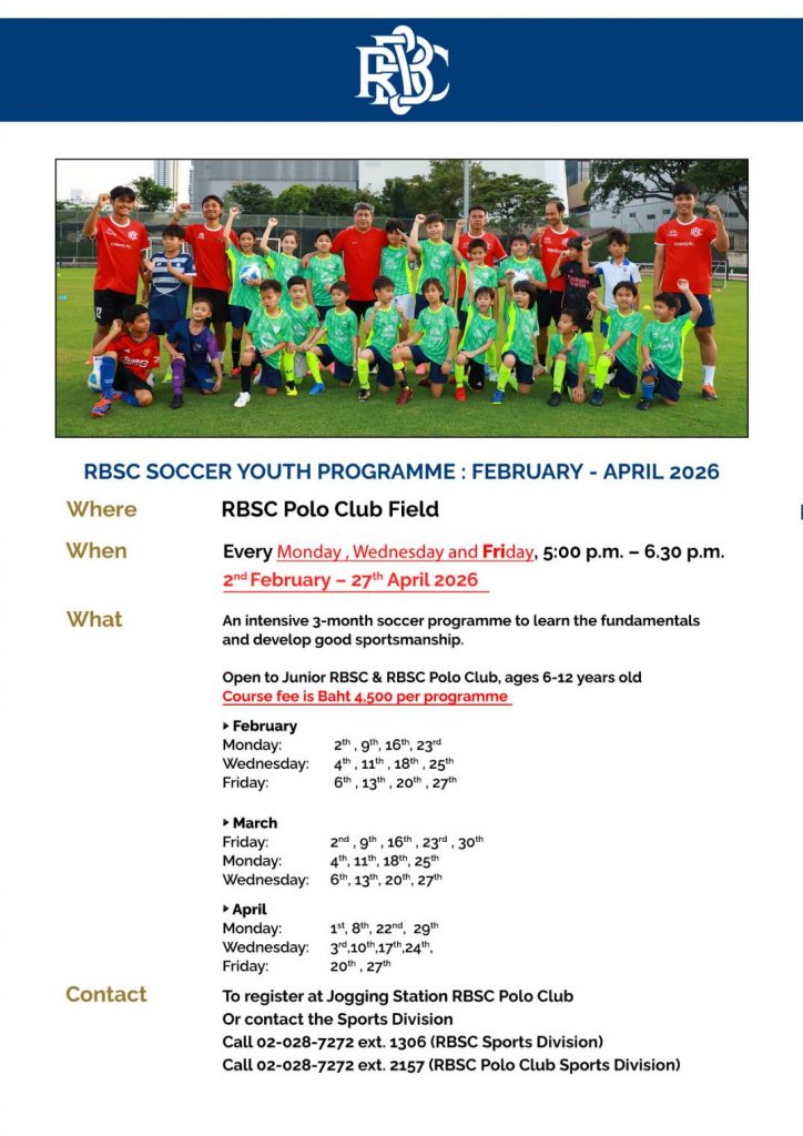 The RBSC Soccer Section is organizing Soccer Youth Programme for Junior RBSC & RBSC Polo Club Members to learn the fundamentals of soccer and develop good sportsmanship.