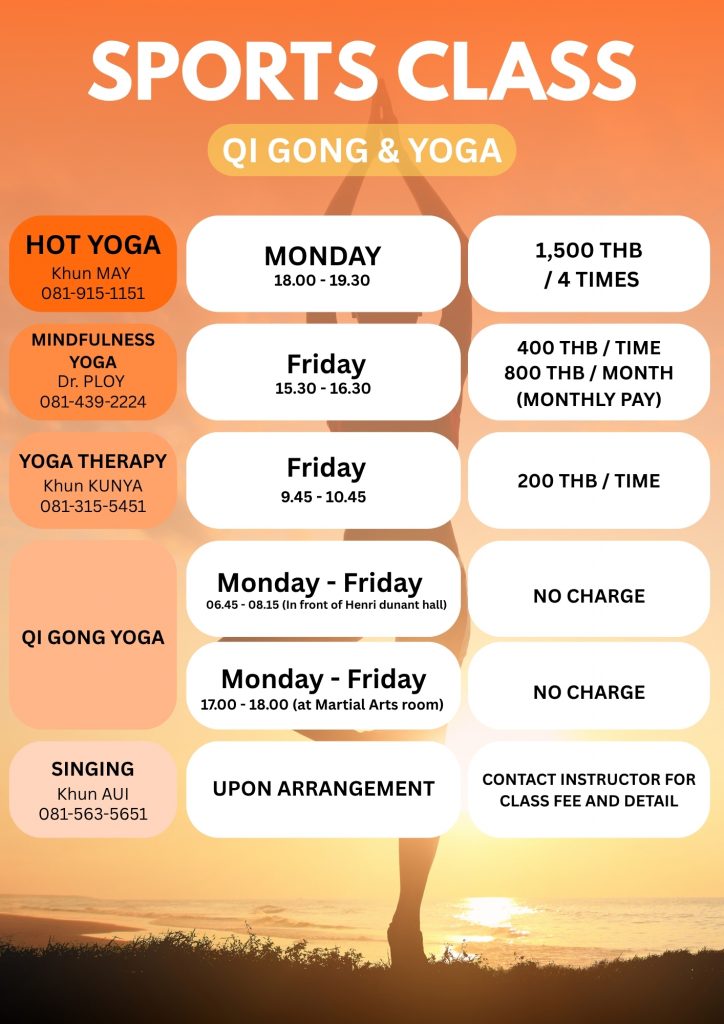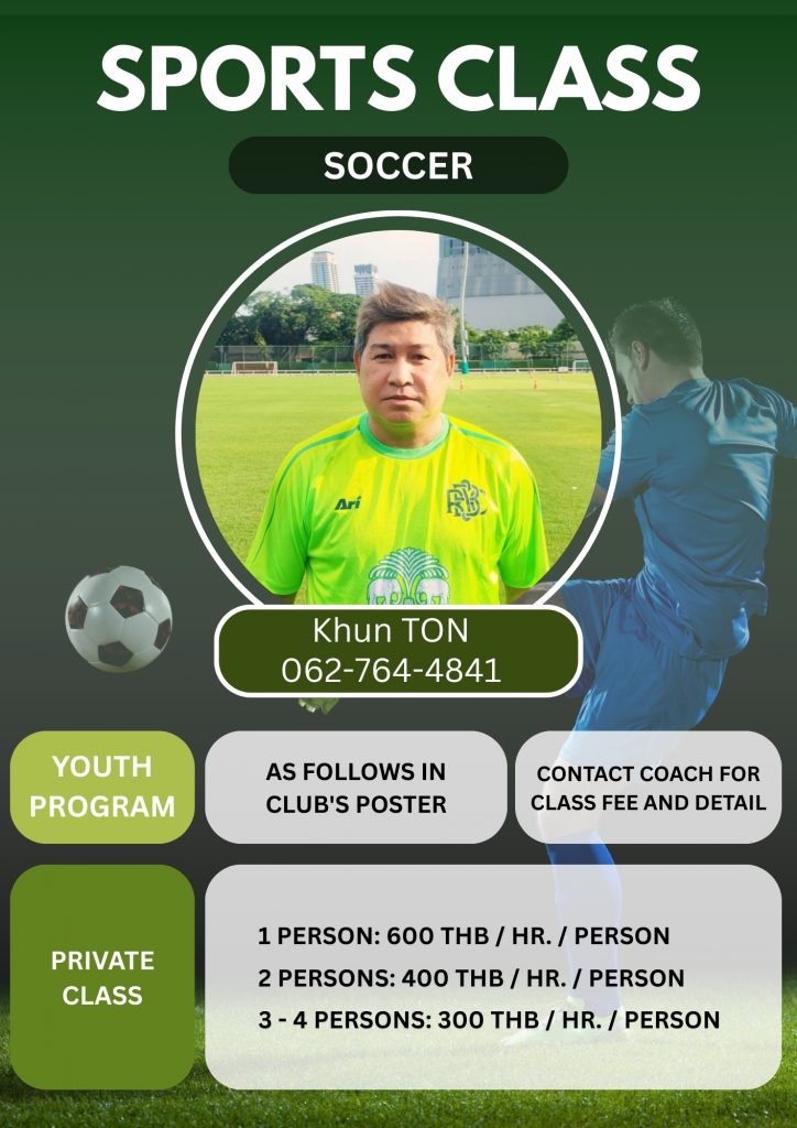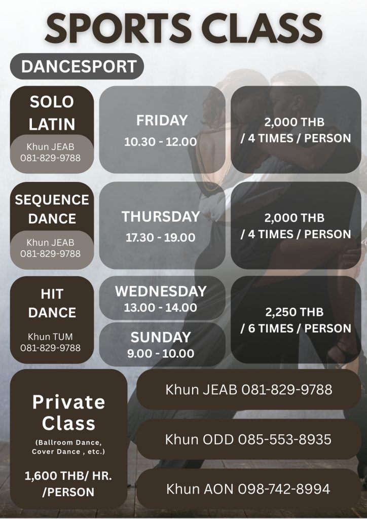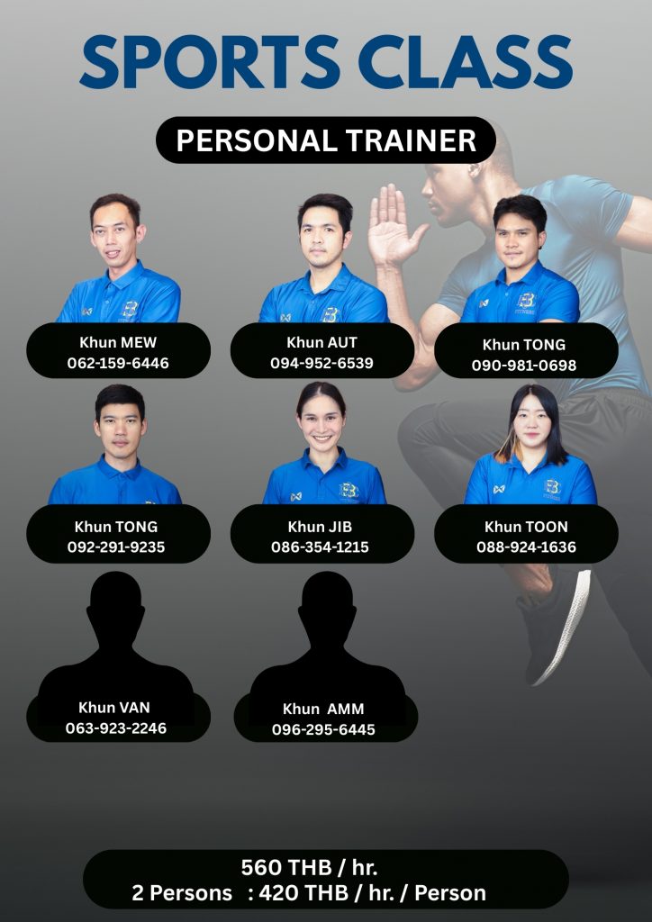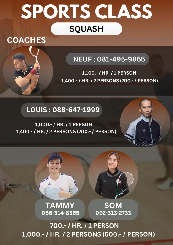To schedule sports instruction, please contact the instructors. Sports classes are exclusive to members only. ติดต่อครูผู้สอนหากต้องการนัดหมายชั้นเรียน ชั้นเรียนกีฬาสำหรับสมาชิกเท่านั้น